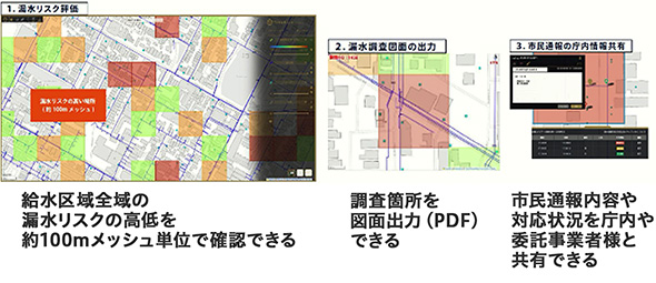 することで水道管の漏水リスクを評価する。導入自治体の例として、
